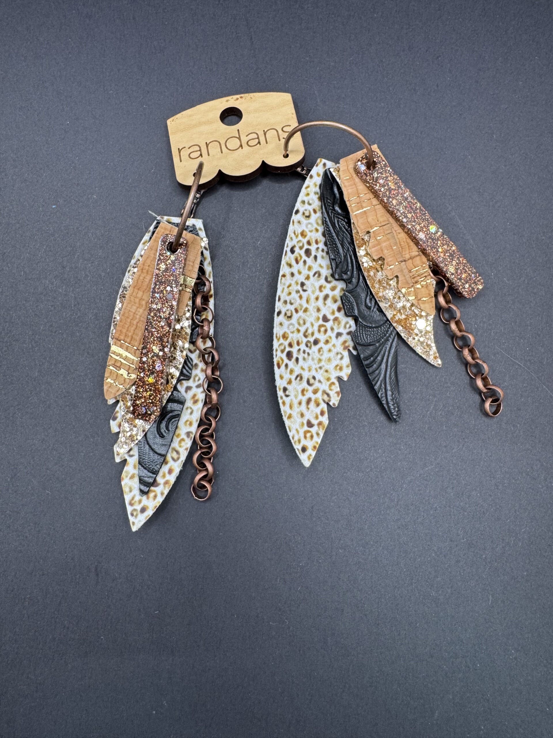 These lightweight, comfortable yet flashy statement earrings that are sure to gain you lots of compliments. These earrings are approximately 4.5” long. Mixed metal in the chain and hoops. Fringe/feathers are made of faux leather, real leather, and vinyl.
