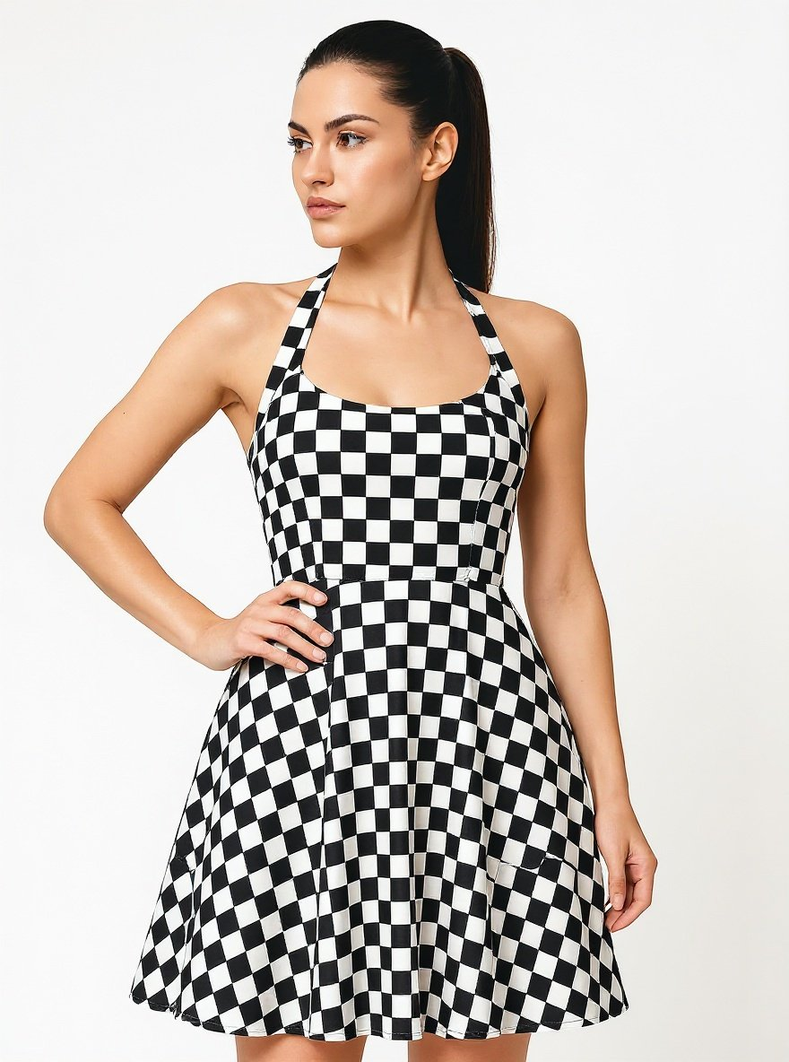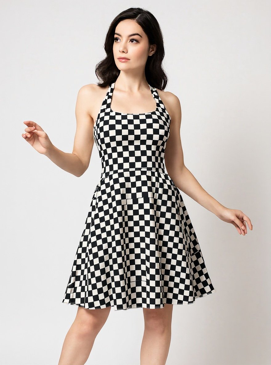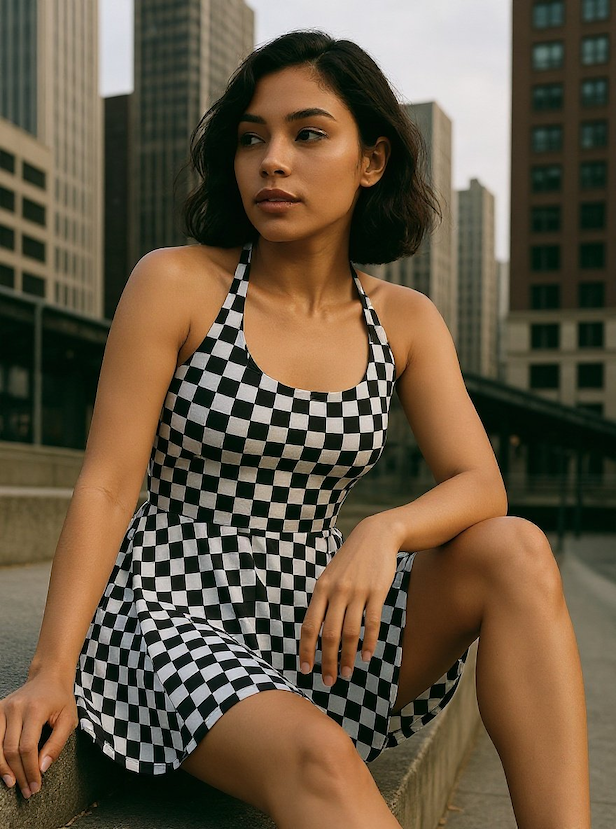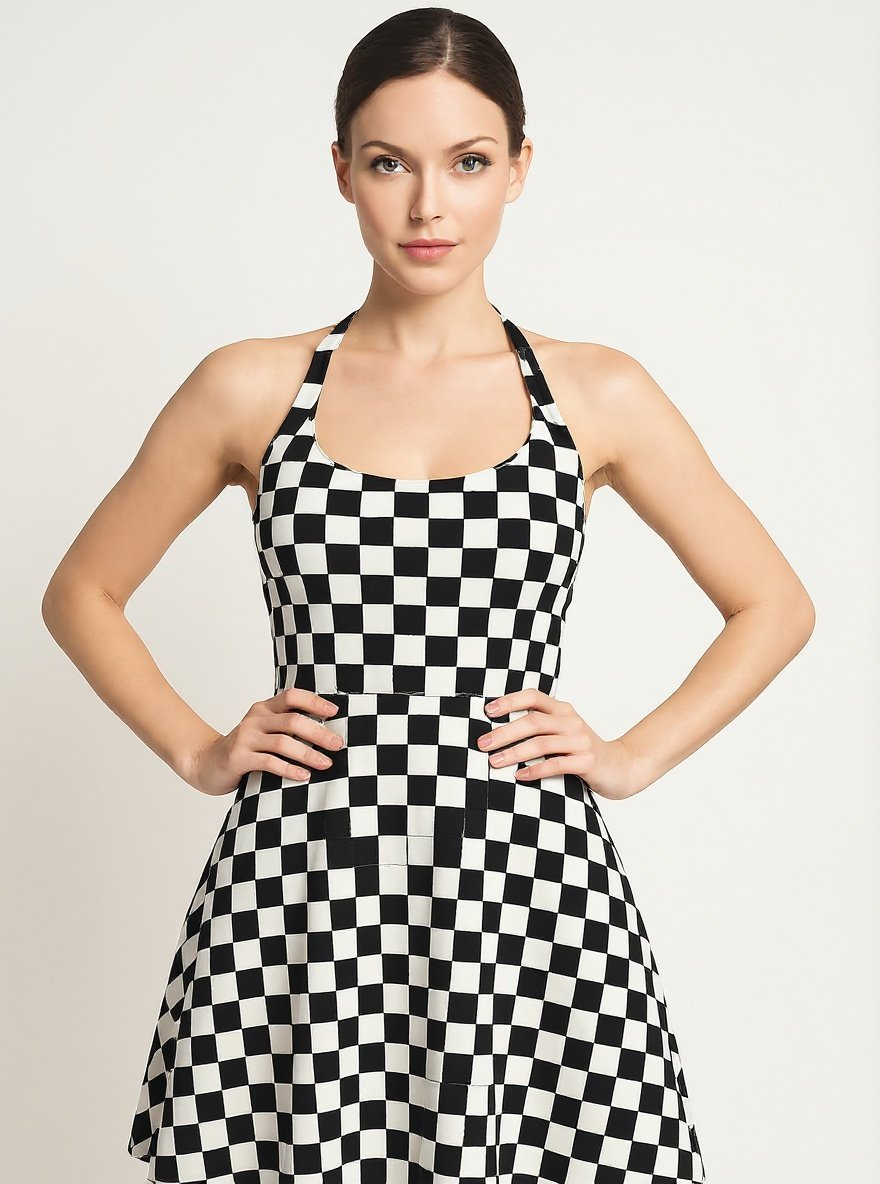 The Checkerboard Halter Dress is a bold and chic piece that brings retro style into the modern wardrobe at Mae Bulls Boutique. Featuring a striking black-and-white checker pattern, this halter dress offers an effortlessly cool silhouette with an open-back twist. Made to flatter while making a statement, it’s perfect for fashion-forward individuals who appreciate both edgy design and versatile wearability.
