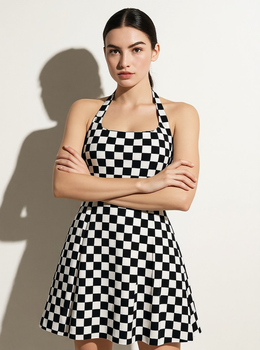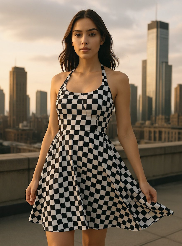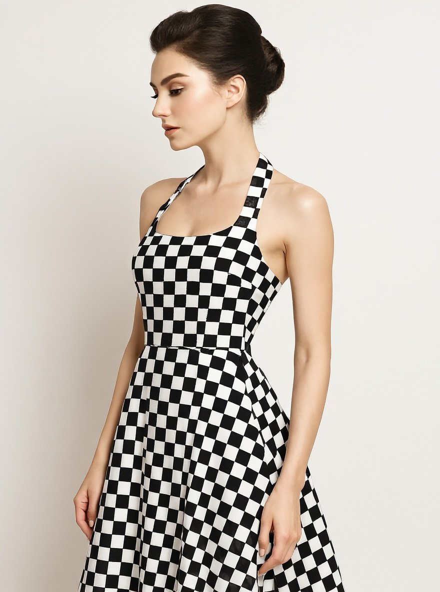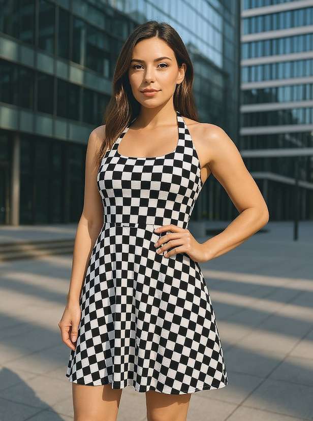 The Checkerboard Halter Dress is a bold and chic piece that brings retro style into the modern wardrobe at Mae Bulls Boutique. Featuring a striking black-and-white checker pattern, this halter dress offers an effortlessly cool silhouette with an open-back twist. Made to flatter while making a statement, it’s perfect for fashion-forward individuals who appreciate both edgy design and versatile wearability.