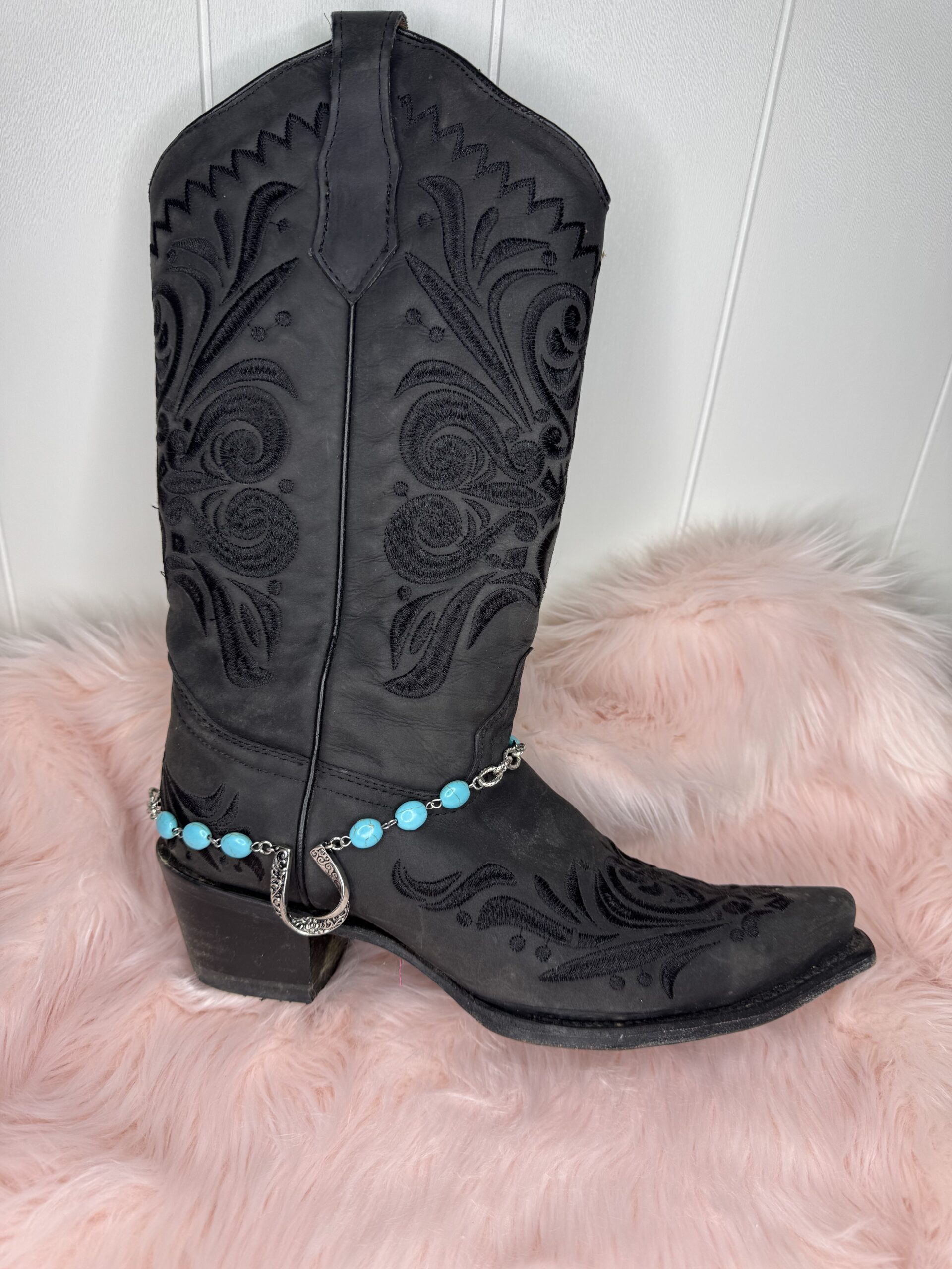 Boot chain with silver horse shoe with turquoise accent stones