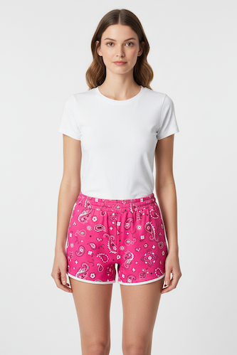 The Pink Paisley Drawstring Shorts are a playful and stylish addition to Mae Bulls Boutique’s collection. Designed in a vibrant pink base with a traditional paisley print, these shorts are detailed with a white drawstring waist for customizable fit and side bows that add a feminine touch. Lightweight and breathable, they’re perfect for summer lounging, running errands, or pairing with your favorite casual tops for a fun weekend look.