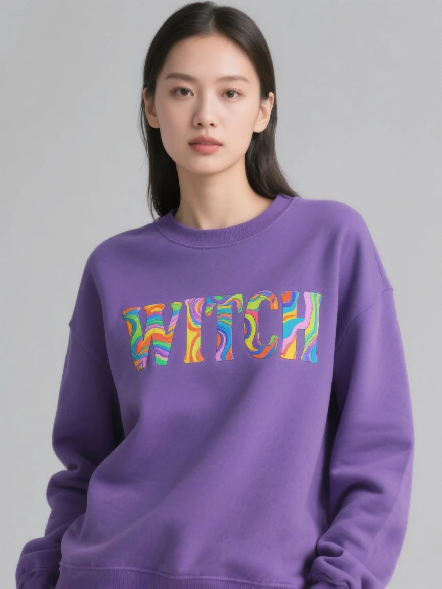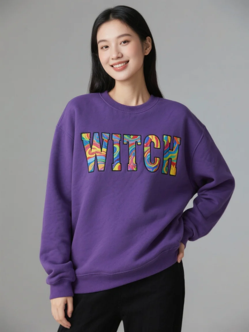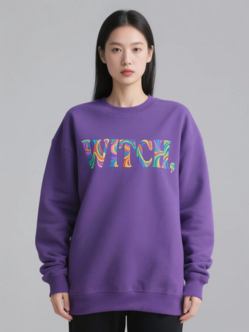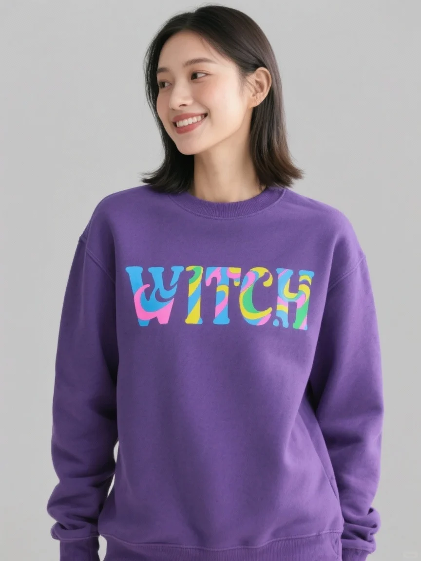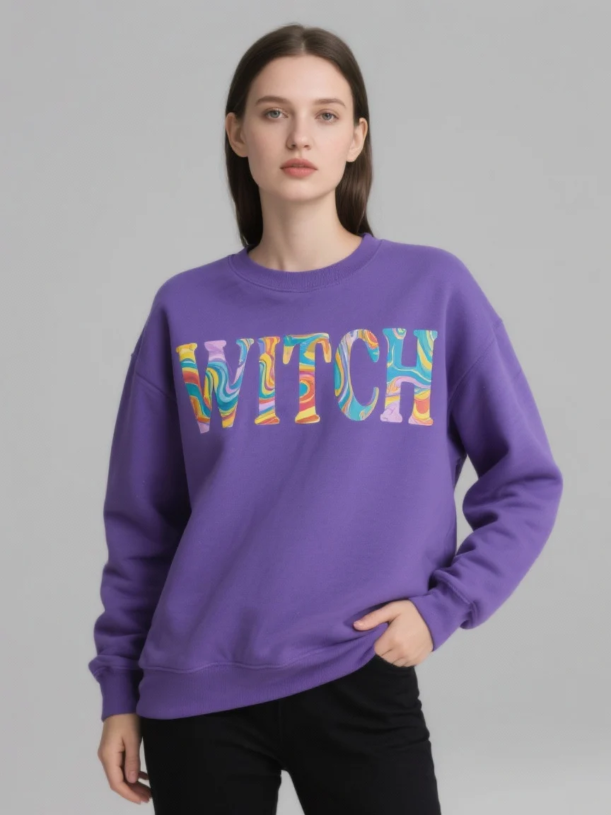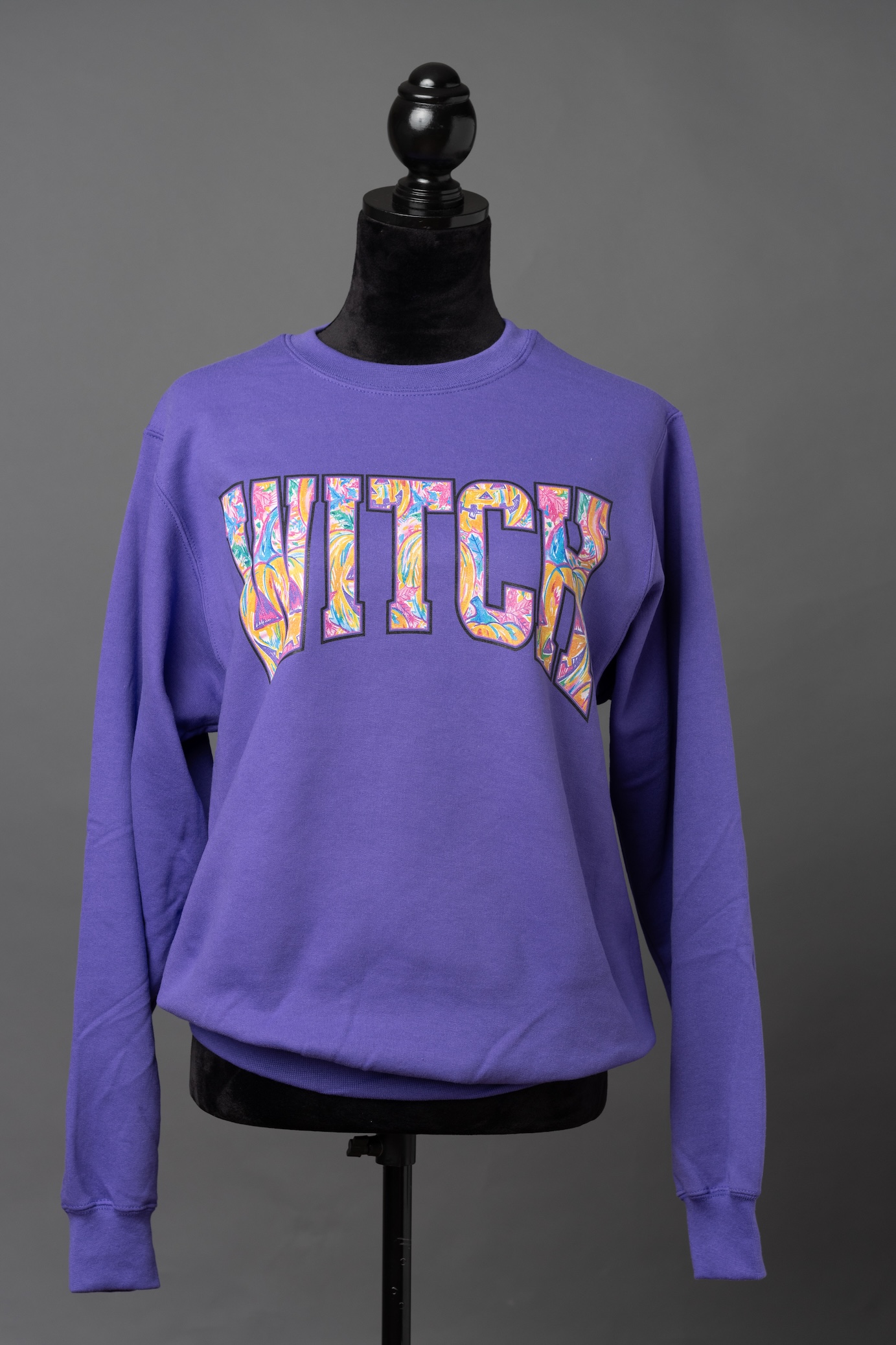 The Purple ‘WITCH’ Sweatshirt from Mae Bulls Boutique is your go-to statement piece for cozy comfort and vibrant style. Featuring bold lettering across the chest with psychedelic multicolored detailing inside the text, this sweatshirt combines whimsy with confidence. The crewneck silhouette and relaxed fit make it perfect for layering or wearing as a stand-alone piece, while the striking design leaves no doubt that you’re rocking a distinct, unapologetic vibe.