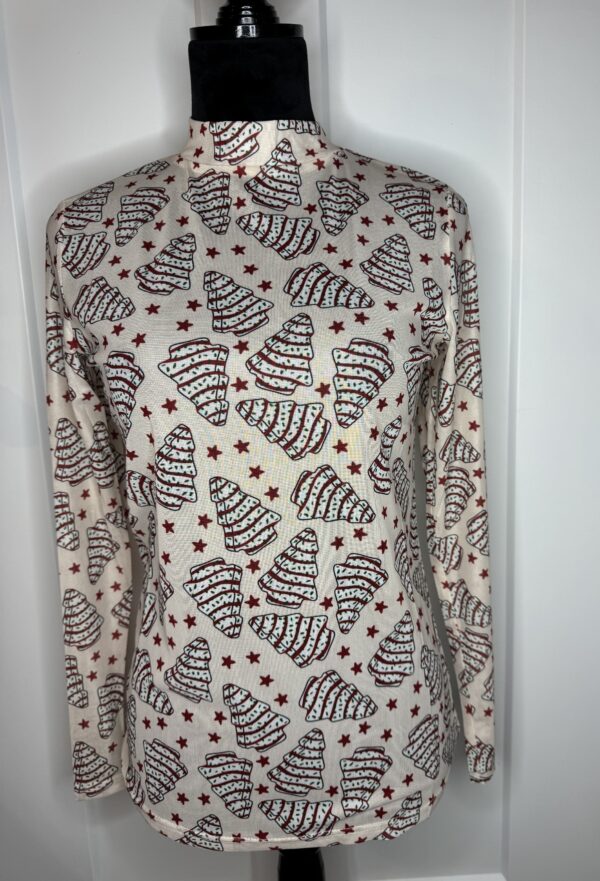& Free ShippingAdd some festive flair to your holiday wardrobe with this fun Snowflakes and Tree Cakes mesh top! Made with a stylish mesh material, this top will have you feeling and looking fabulous. Perfect for spreading cheer and joy during the Christmas season!