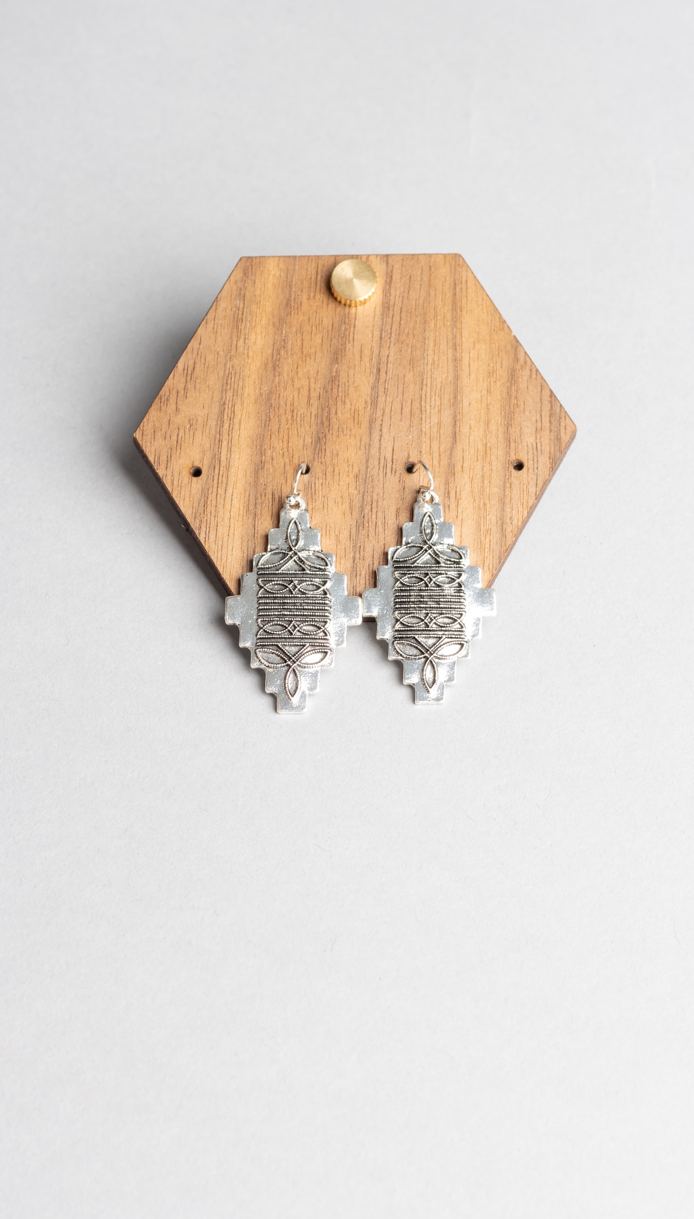 The Southwestern Etched Silver Earrings from Mae Bulls Boutique highlight artistry and tradition in modern jewelry. These earrings feature striking geometric etchings that reflect tribal-inspired patterns, crafted in polished silver for a bold yet timeless appeal. Their statement-making quality ensures they stand out whether paired with denim, dresses, or western wear.