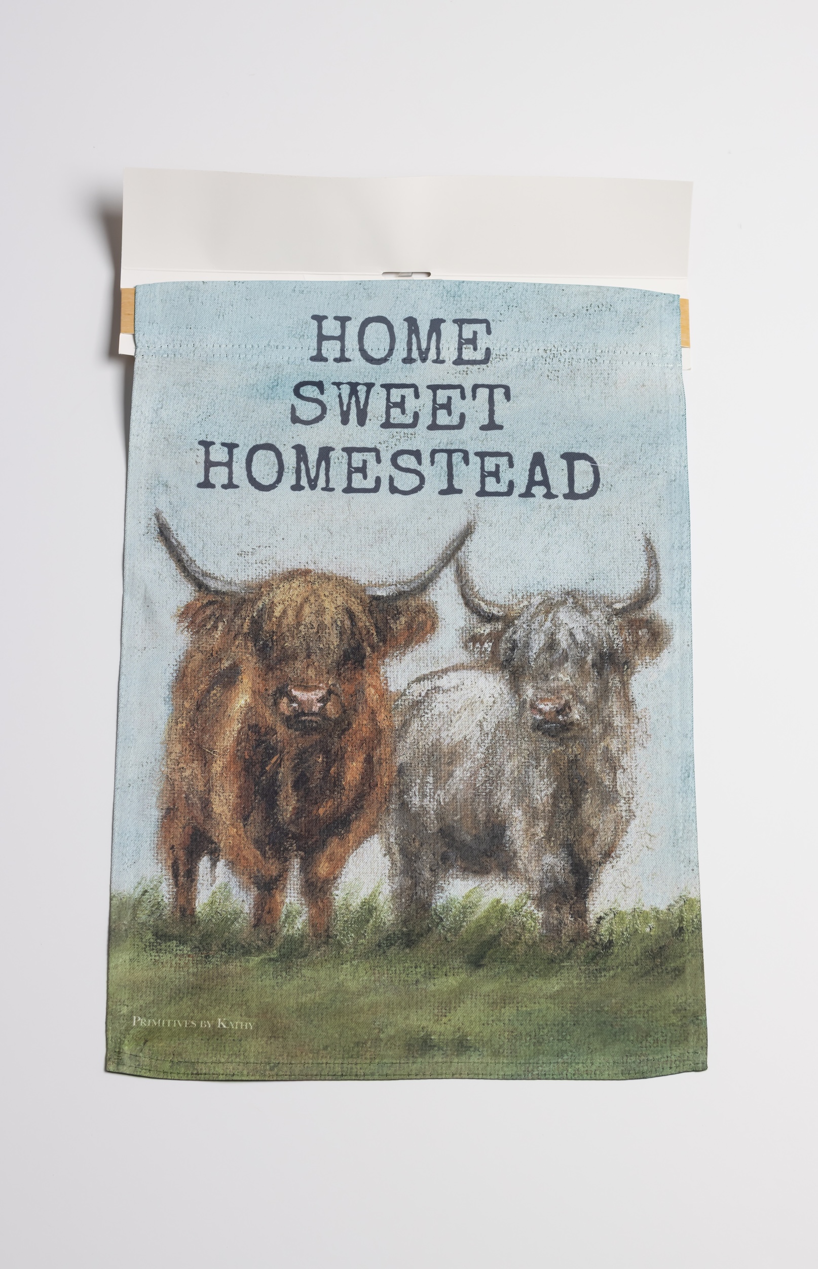 The Sweet Homestead Garden Flag combines rustic beauty with heartfelt sentiment. Displaying Highland cows beneath the words ‘Home Sweet Homestead,’ this weather-resistant flag conveys welcoming warmth for outdoor spaces.