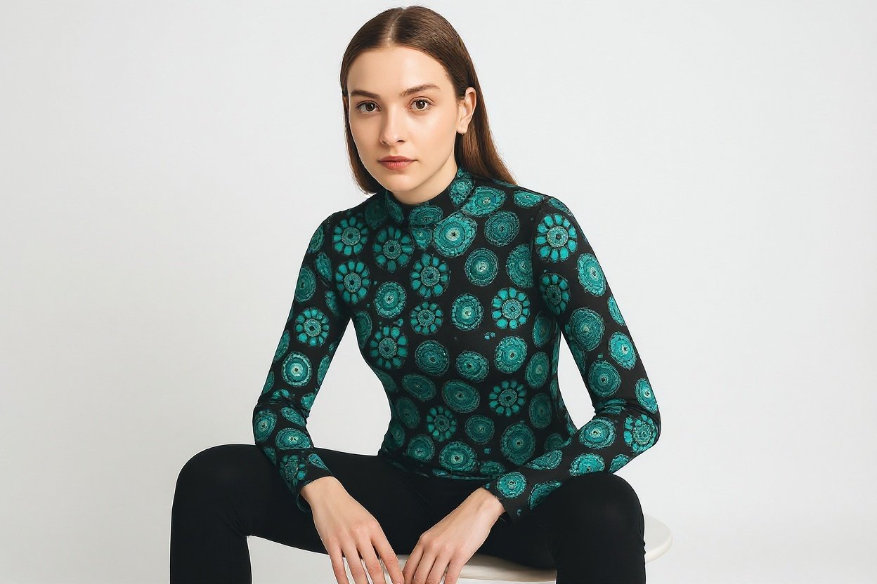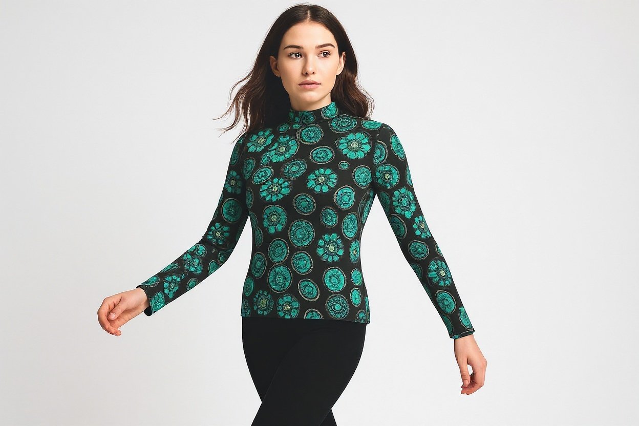 Ideal for layering or wearing solo, this long-sleeve works in cooler seasons as a statement fashion staple. Pair with jeans, leather pants, or skirts to highlight its vibrancy. Comfortable fabric ensures wearability, while the bold print guarantees compliments. Add a refreshing sparkle to your wardrobe with this standout design.